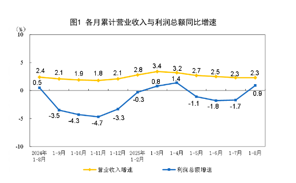 国家统计局9月27日发布的数据显示,1-8月份,规模以上工业企业利润由1-7月份同比下降1.7%转为增长0.9%,扭转了自今年5月份以来企业累计利润持续下降态势。
